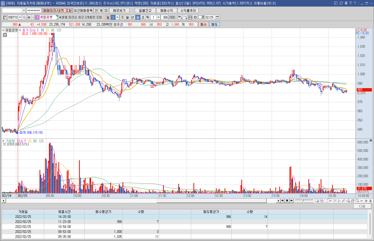 매수 사유: 삼성전자의 로봇 사업 확대 소식에 로봇 관련주들이 급등했는데 그 중 보유중인 예수금으로 매매 가능한 종목이 이 종목이었다.