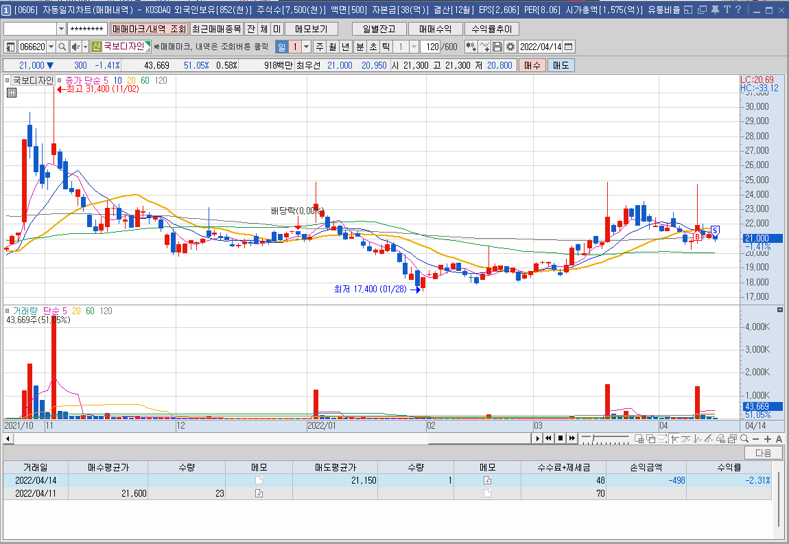 실현 손익: -2.31%(1주 매도)