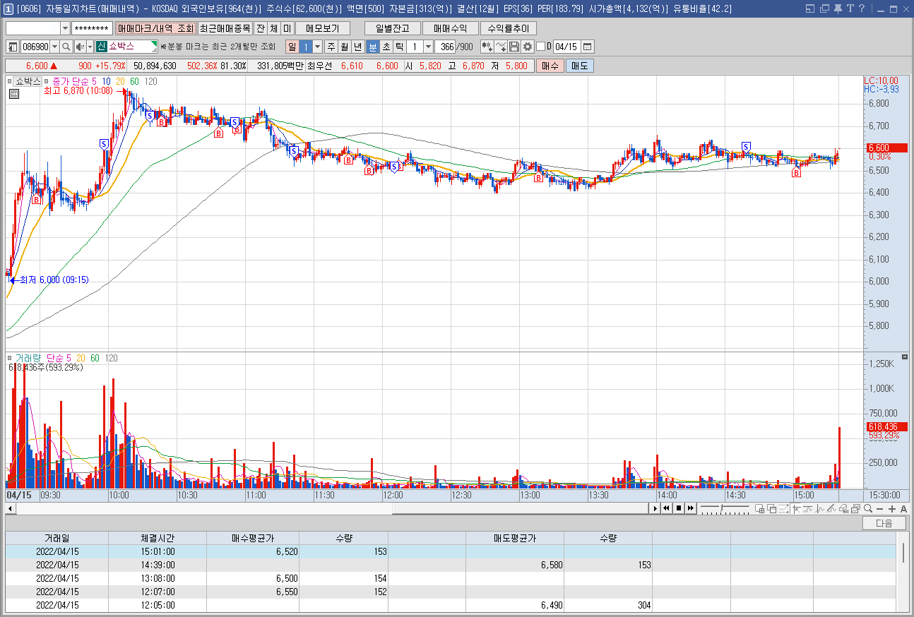 내용: 오늘 문제의 종목. 사실 종목이 문제였다기보다는 연습한다고 띄워놓은 8282창에서 뭔가 알 수 없는 이유로 예수금 풀매수가 돼버린데다가 어떻게해야 할지 망설이는 사이에 짱돌을 맞아 안 맞아도 될 손실을 입어버렸다. 결과적으로 내가 잘못한거다. 아주 소액이지만 익절할 수 있는 순간이 있었음에도 탐욕에 눈이 멀어 그냥 손절을 맞아버렸다. 이번주 초와는 완전히 다른 원래대로 돌아간 모습이다. 잘못 들어간 주문과 미숙한 대처가 일을 더 크게 만들었다. 언제쯤 칼손절을 할 수 있게 될지.