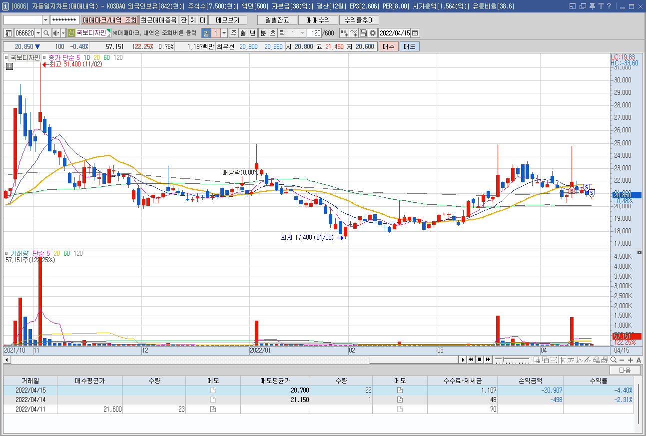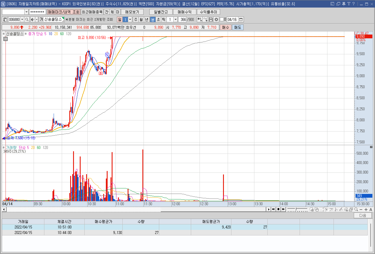 내용: 오늘 문제의 종목. 사실 종목이 문제였다기보다는 연습한다고 띄워놓은 8282창에서 뭔가 알 수 없는 이유로 예수금 풀매수가 돼버린데다가 어떻게해야 할지 망설이는 사이에 짱돌을 맞아 안 맞아도 될 손실을 입어버렸다. 결과적으로 내가 잘못한거다. 아주 소액이지만 익절할 수 있는 순간이 있었음에도 탐욕에 눈이 멀어 그냥 손절을 맞아버렸다. 이번주 초와는 완전히 다른 원래대로 돌아간 모습이다. 잘못 들어간 주문과 미숙한 대처가 일을 더 크게 만들었다. 언제쯤 칼손절을 할 수 있게 될지.