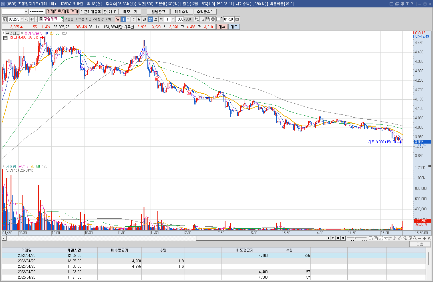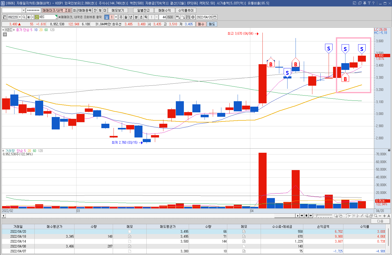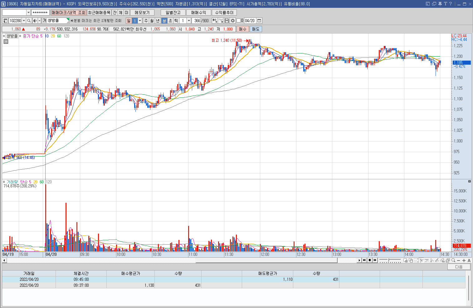 내용: 쌍방울하고는 인연이 안될려고 하는지 이전에 이스타항공 인수 때에도 한번 매매했던거 같은데 그때도 손절했던 것 같은데 오늘도 어김없이 손절이네 젠장ㅠ 오늘도 매수 후 하락하는 모습에 손절을 쳤으나 얼마 지나지 않아 재상승ㅠ 왜 자꾸 날 떨궈놓고 가려고들 하는지.