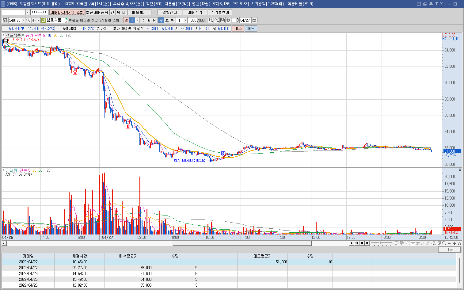 매수 사유: 인도네시아 팜유 수출 금지로 인해 급등. 홀딩 종목.