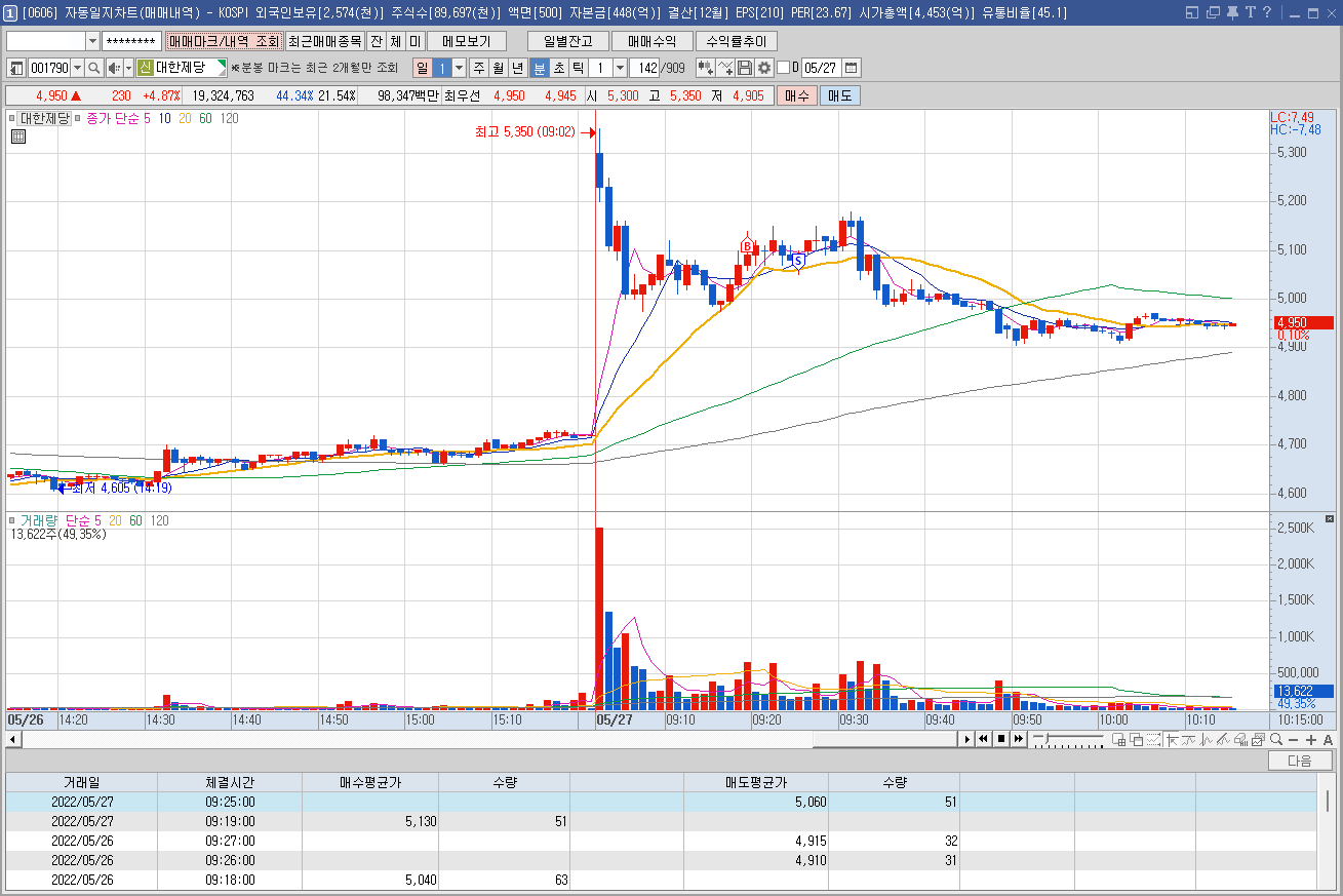 매수 사유: 최근 설탕 수출 제한으로 움직였던 것으로 장전에 미리 선별한 종목.