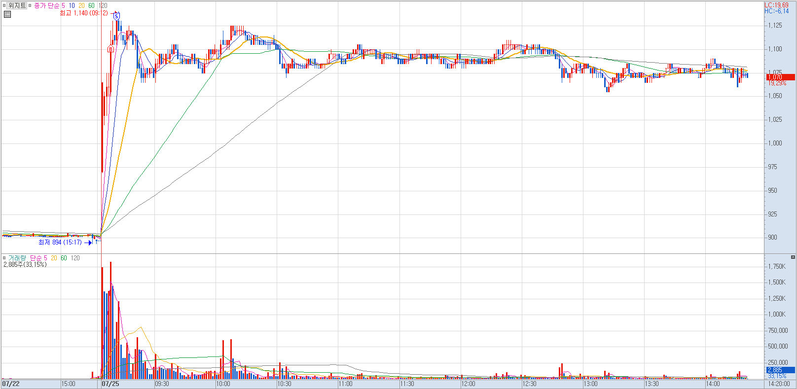 매수 사유: 빗썸 매각 뉴스 관련주로 부각되면서 장초반 강한 상승에 진입.