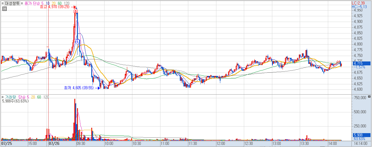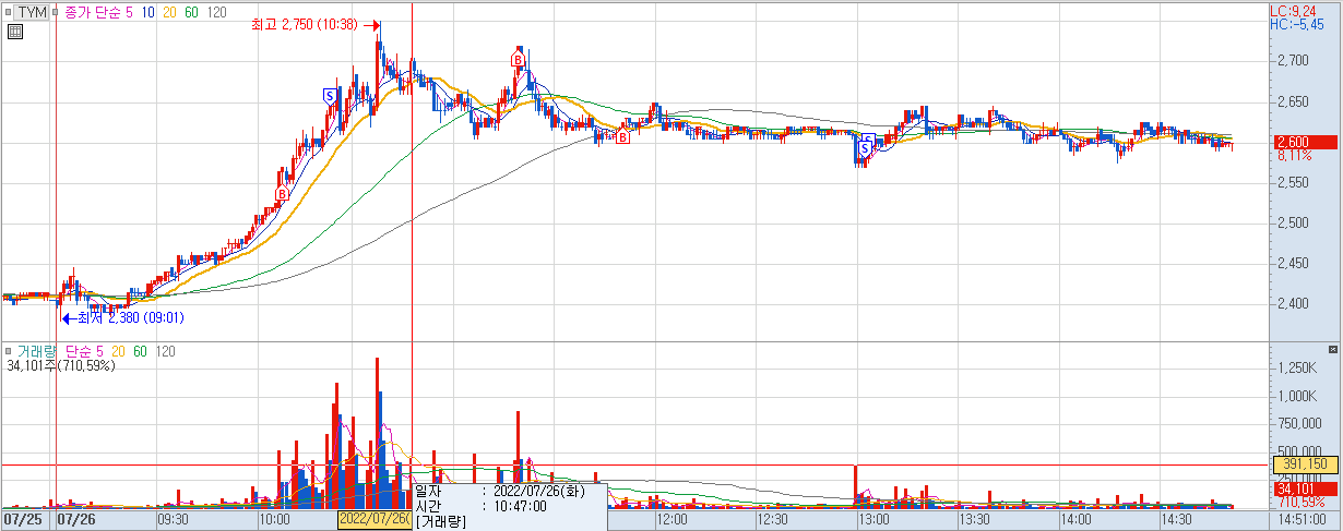매수 사유: 시초가를 돌파하며 급등하는 모습에 진입.
