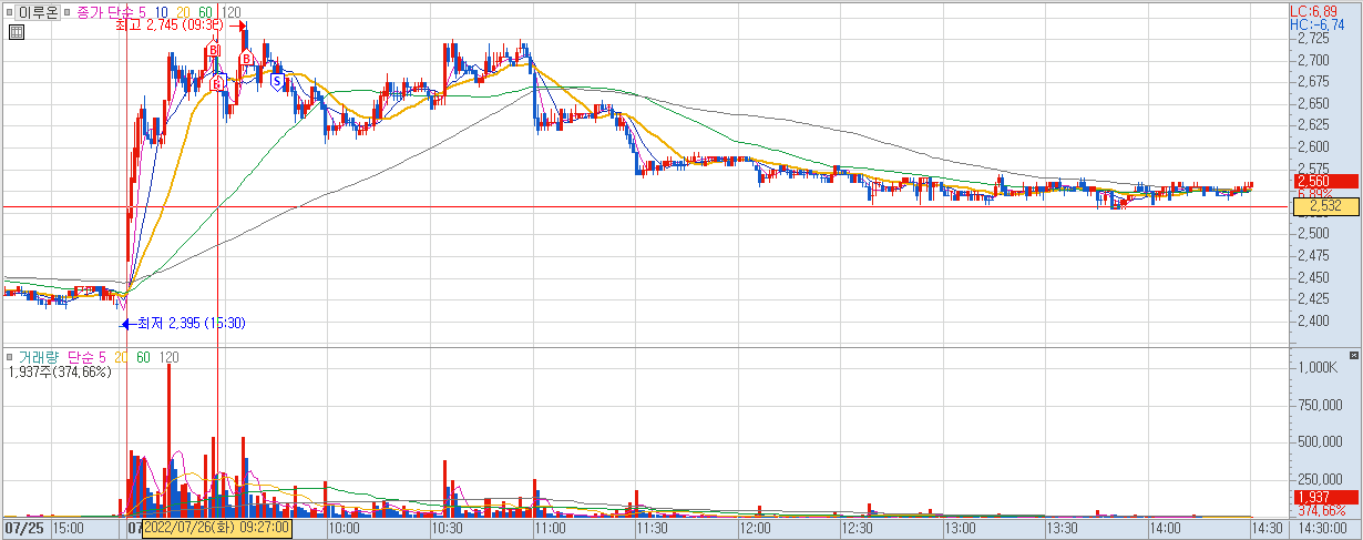 매수 사유: 뉴스는 없었는데 장초반부터 지속적인 상승세를 보여주는 모습에 진입.
