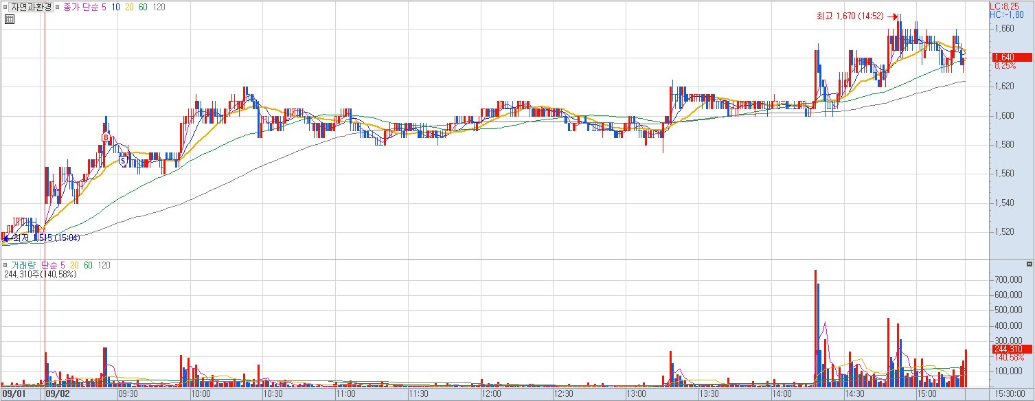 매수 사유: 장초반 당일 전고점을 거래량 동반과 함께 돌파해주는 모습과 며칠전 빗물저류터널 원천 기술 보유 뉴스로 부각됐던 이력에 진입.