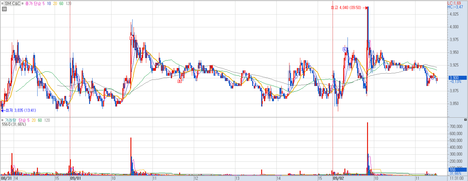 내용: 매매를 기본적으로 2분할 매수로 진행을 하는데 왜 이걸 그냥 손절했는지 이해할 수가 없다. 물론 이유가 아예 없지는 않았다. 일봉상 240일선 바로 밑에 있었고 장초반에는 거래도 별로 없었기에 240일선을 돌파하지 못할 것 같았고, 결정적으로 진입전 일봉을 체크하지 못했다. 아마 체크했더라면 아예 진입하지 않았을텐데. 그래도 태풍 힌남노 북상과 엮여서 반등할수도 있었는데 내 섣부른 판단이 아쉬웠다. 암튼 결과적으로 오늘 손절친 이후로 계속 상승하며 그냥 조금만 있었더라면 적어도 본절은 할 수 있었을텐데 아쉽다.