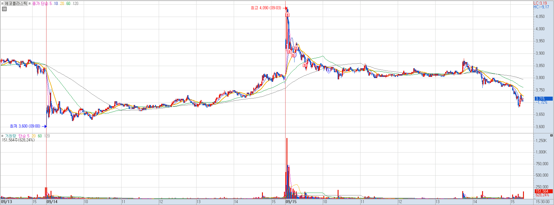 내용: 결과적으론 더 큰 수익을 낼 수도 있었지만 최근에 워낙 급등한 종목이라 줄때 먹자라는 생각에 짧게 수익 실현하고 정리.
