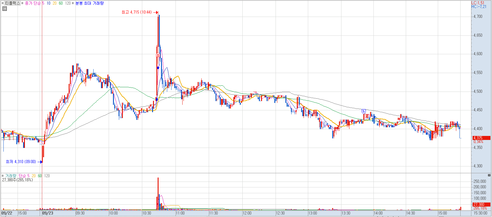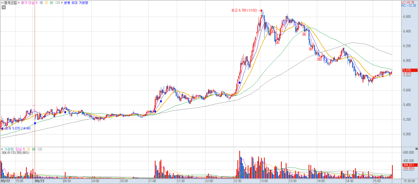 매수 사유: 당일 전고점을 돌파하는 모습에 진입.
