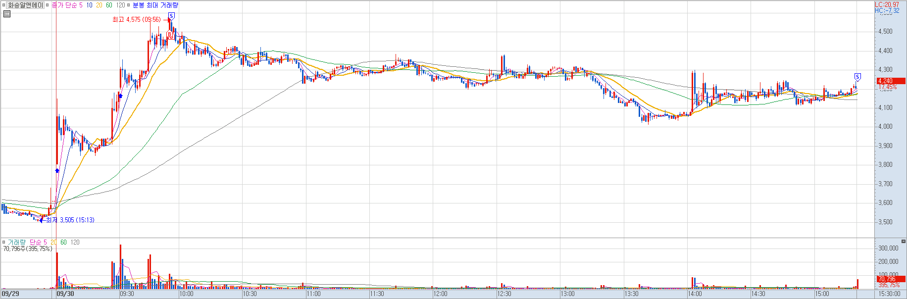 매수 사유: 당일 전고점을 거래량과 함께 돌파하는 모습에 진입.