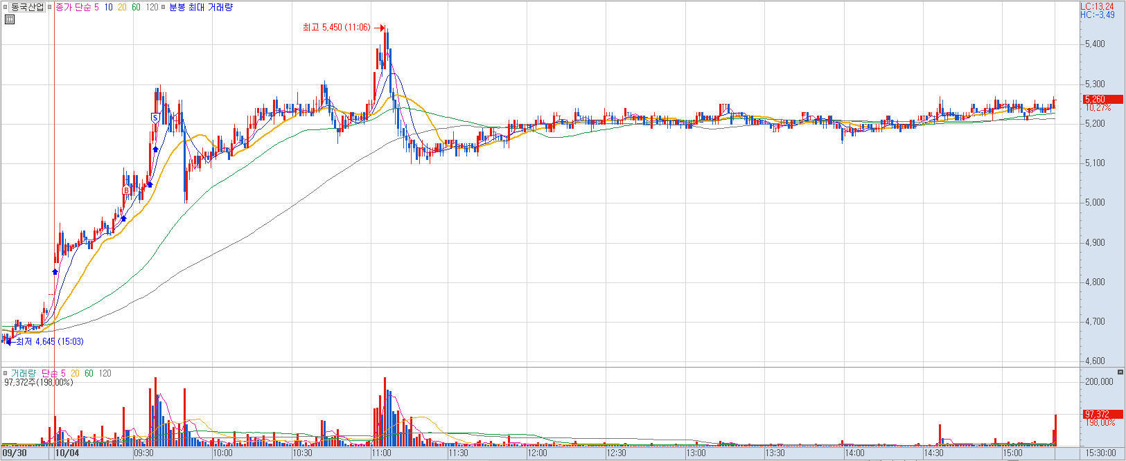 내용: 원래는 5,150원 라인에 정리하려고 생각했으나 생각보다 더 강한 상승을 보여 5,200원에 정리.
