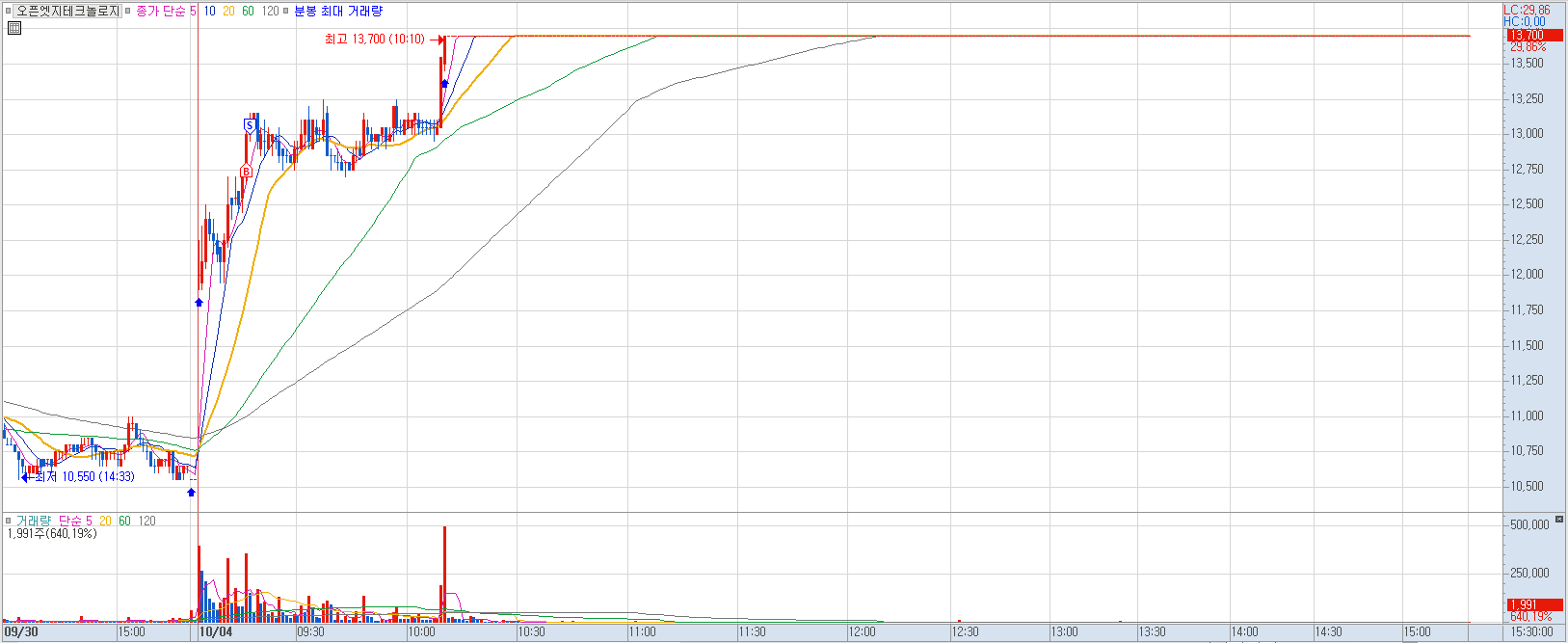 매수 사유: 당일 전고점을 돌파하며 급등하는 모습에 진입.