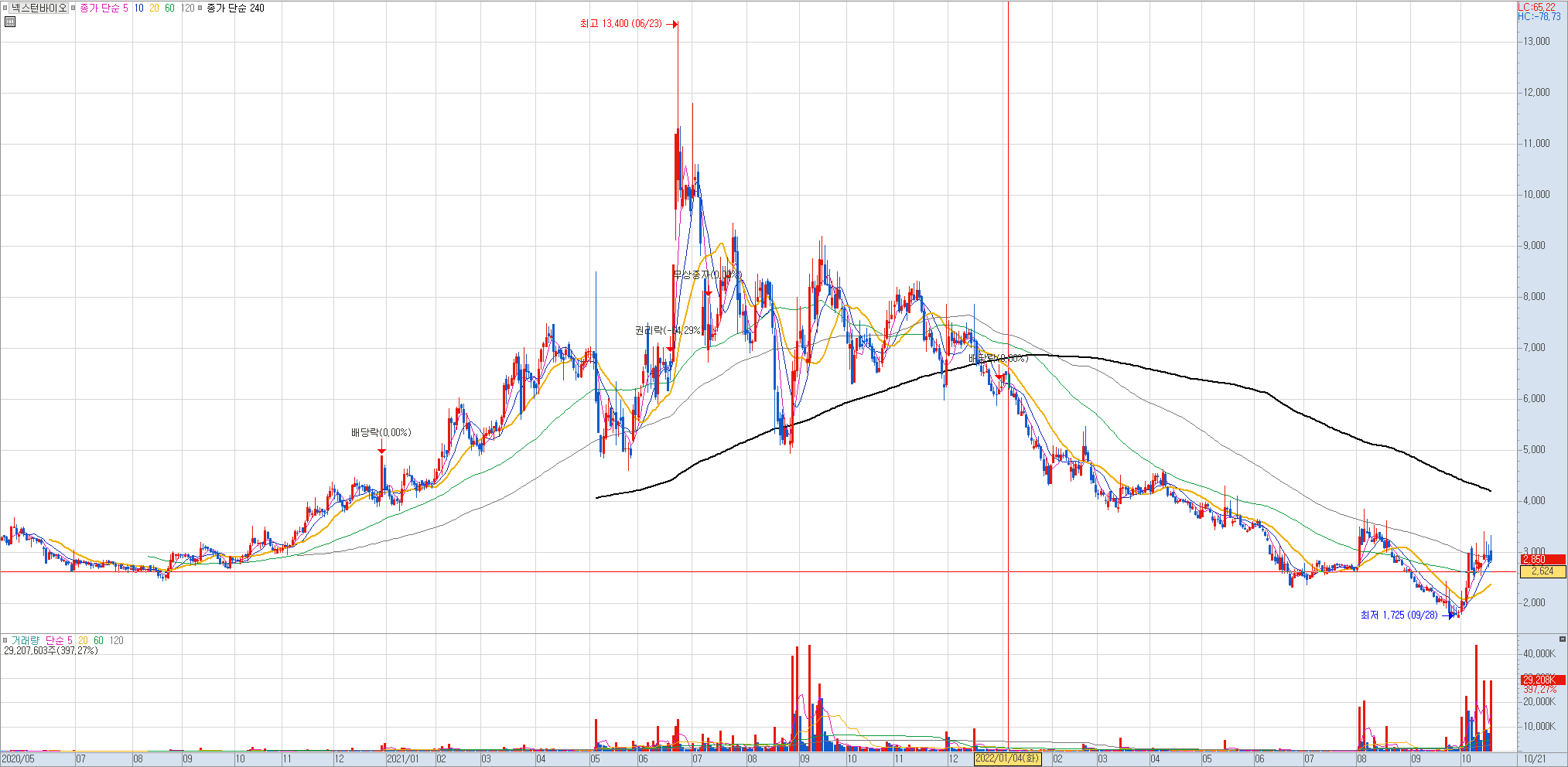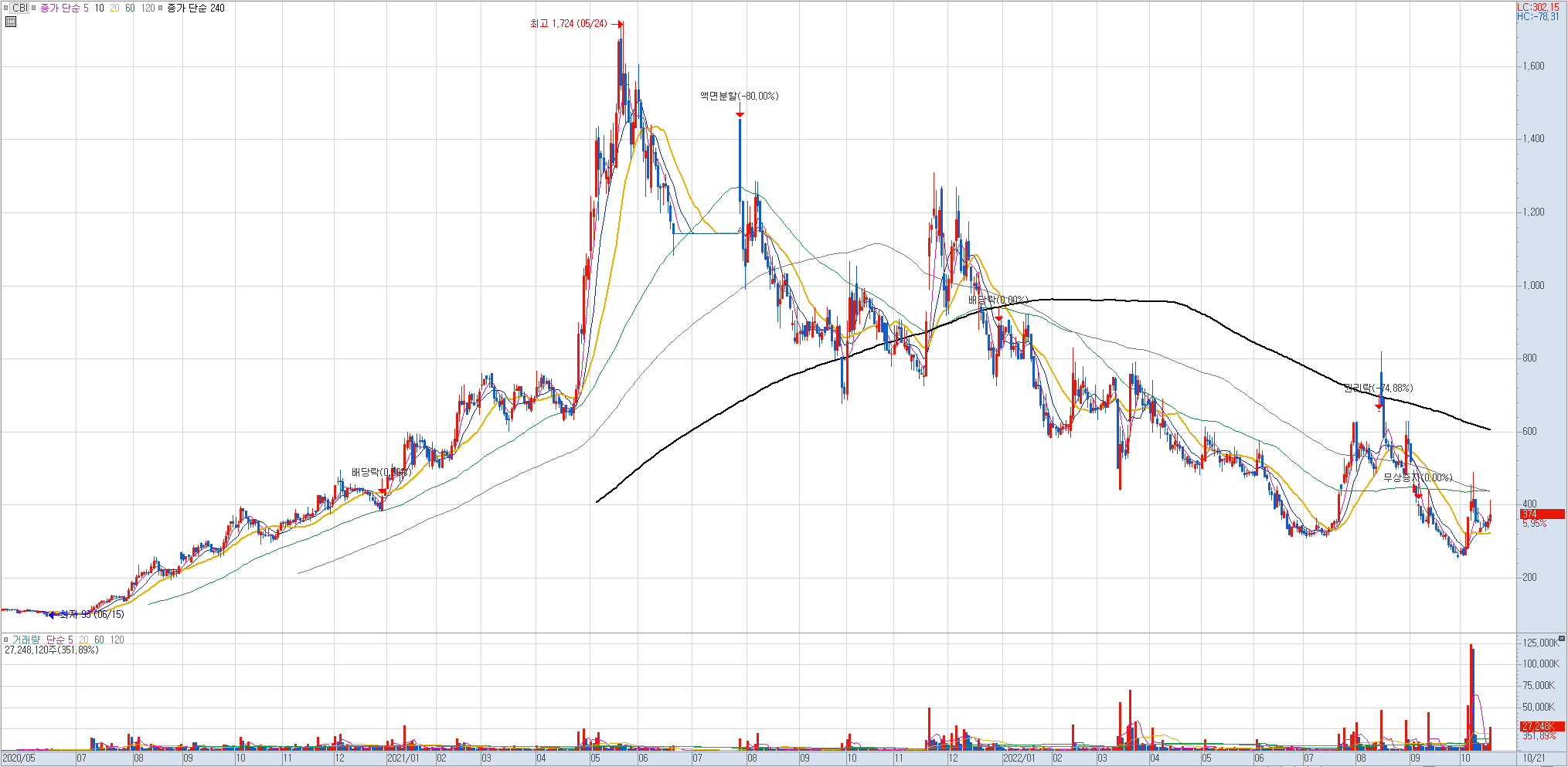 손절 라인: 일봉상 종가상 240선 이탈시.