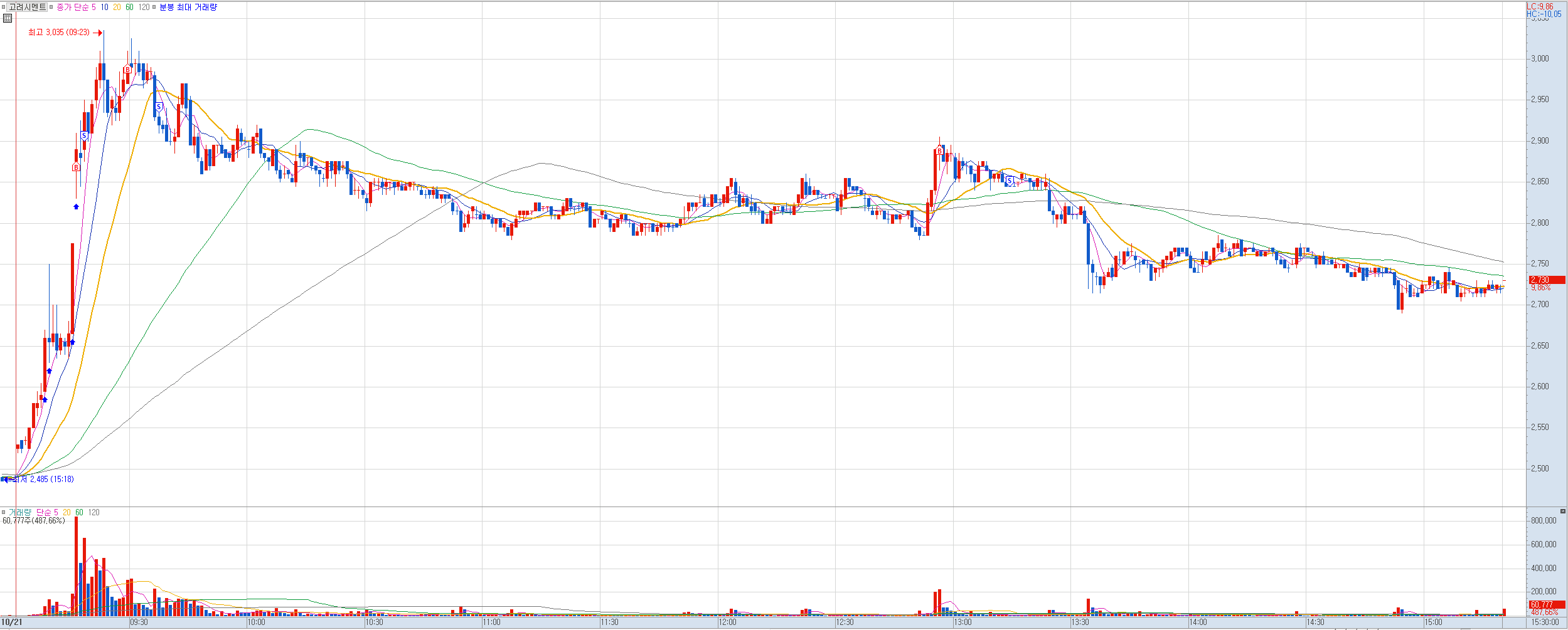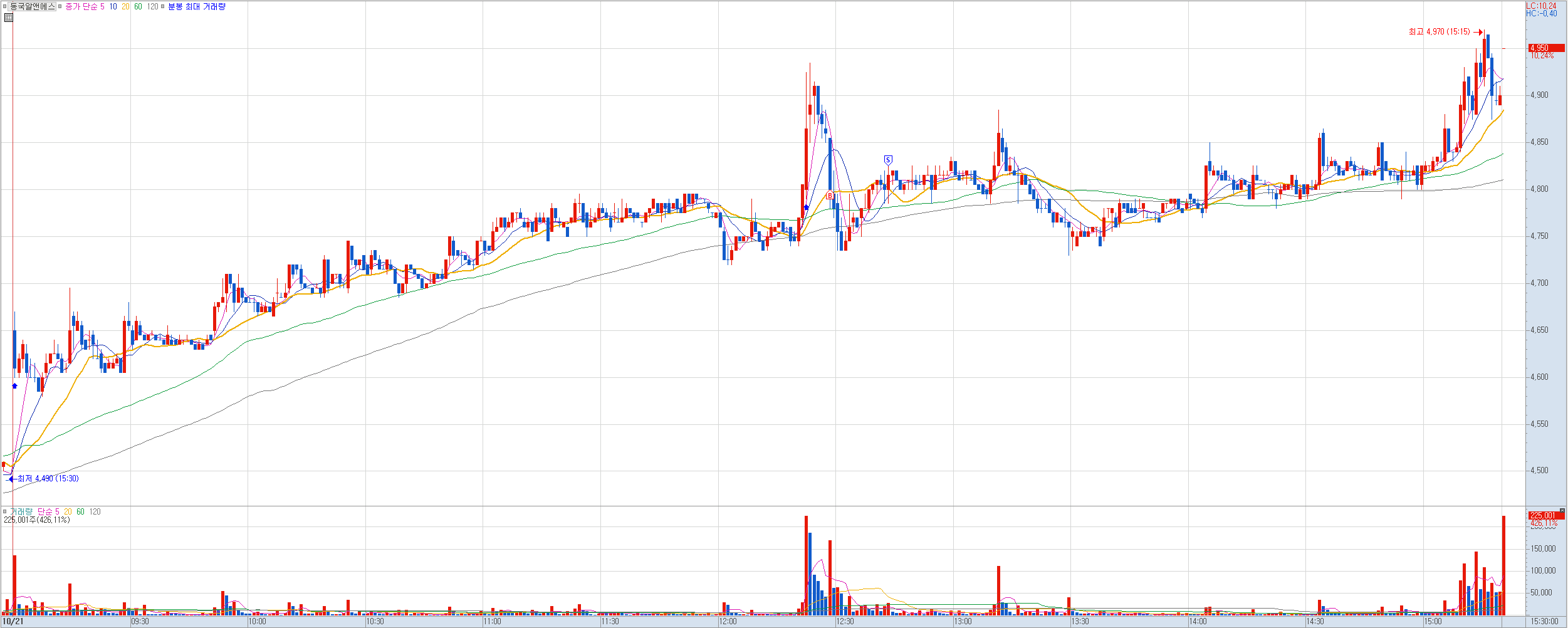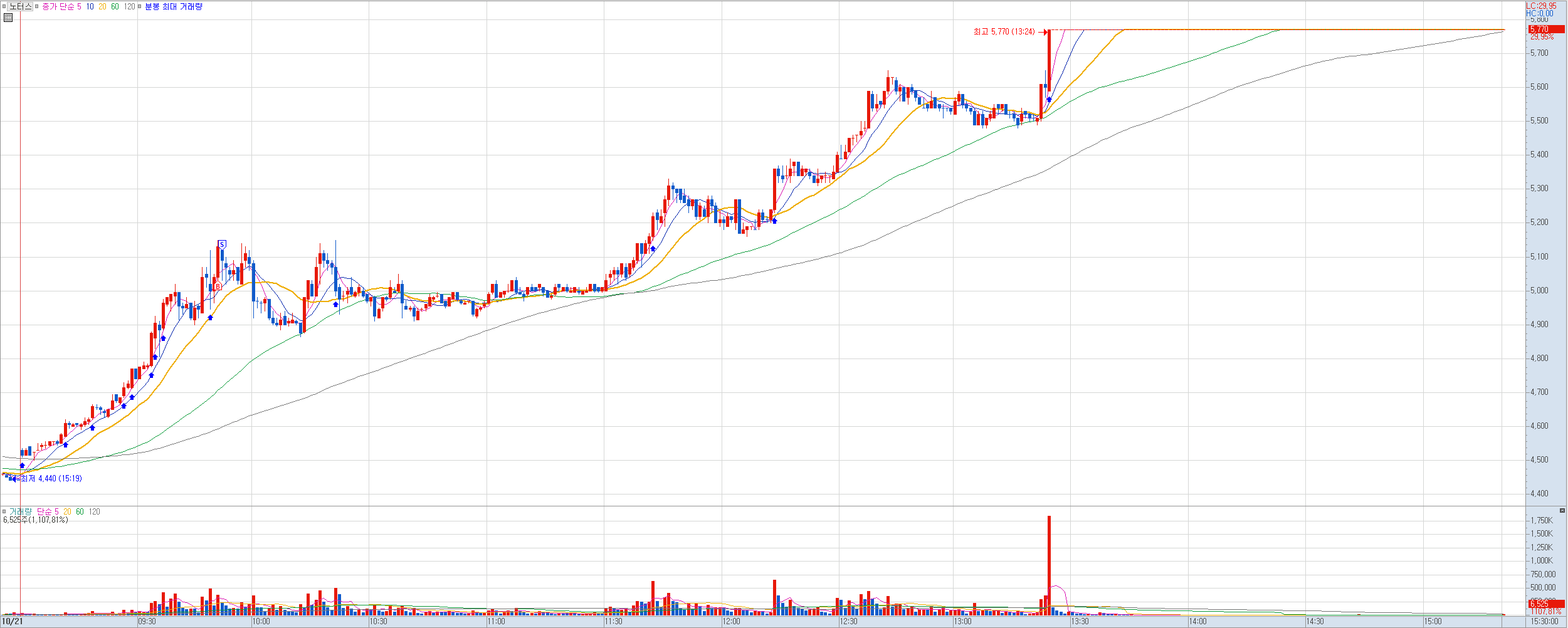 비고: 마지막 매매는 너무 늦게 들어갔다. 진입 타점이 오히려 수익 실현해야 하는 자리였는데. 급등 초기에 20선 돌파했을때 들어가는 타이밍인데 또 나와의 약속을 어겼다.