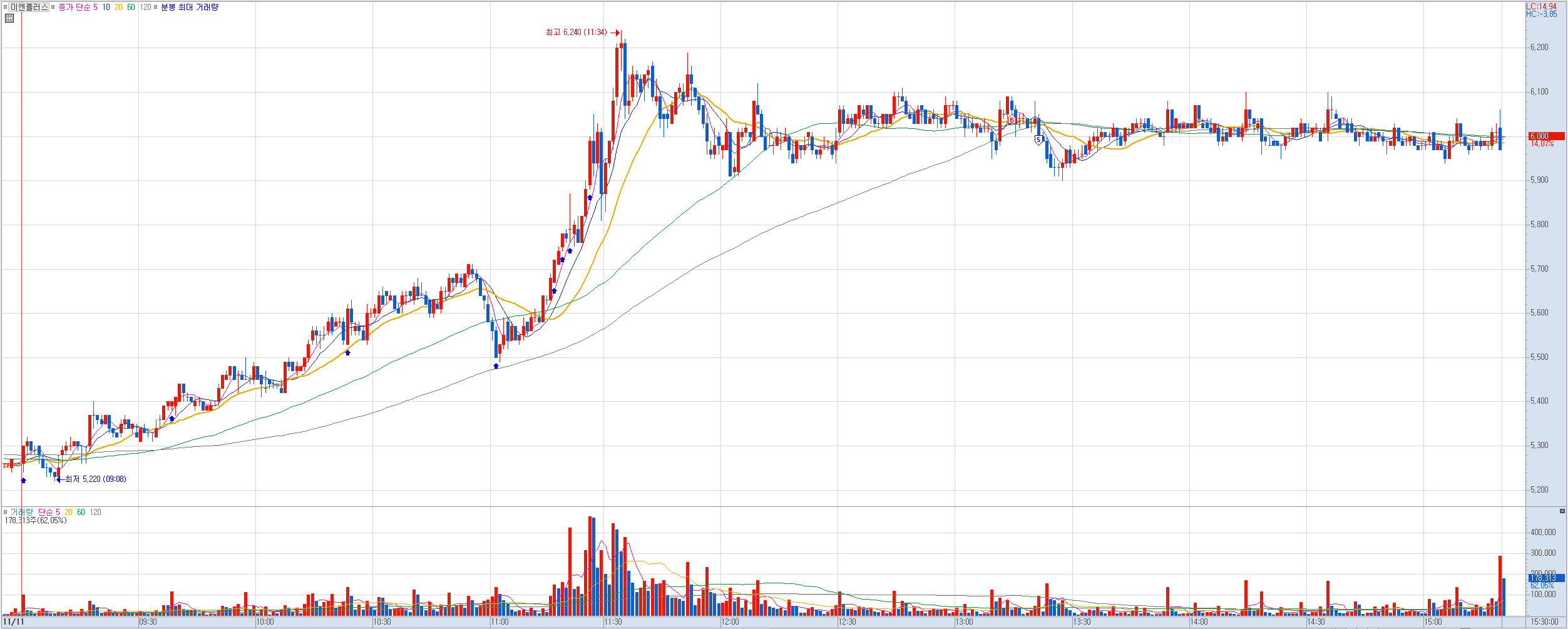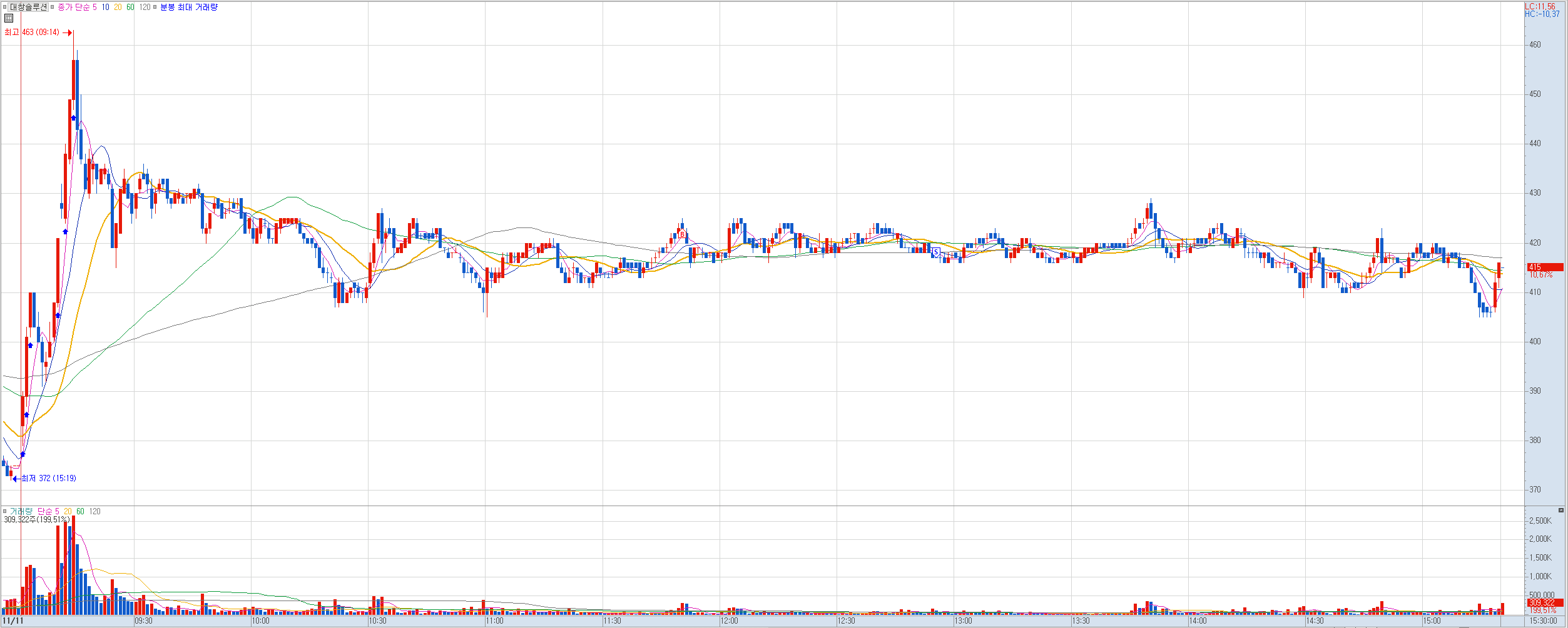 내용: 이것도 장초반 급격하게 상승했다가 하락한 종목으로 내일부턴 걸러야지.