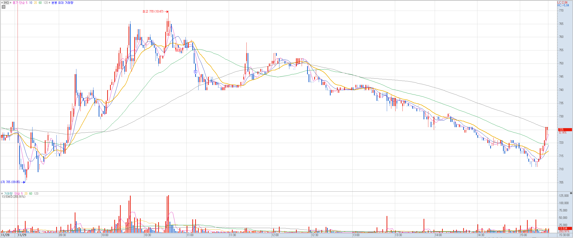 비고: 오늘 이런 패턴에 자주 당했다. 20선 기준에서 매매하는데 내내 이탈이 없다가 왜 내가 들어가니 이탈시켜서 다시 가냐구 짜증나게.