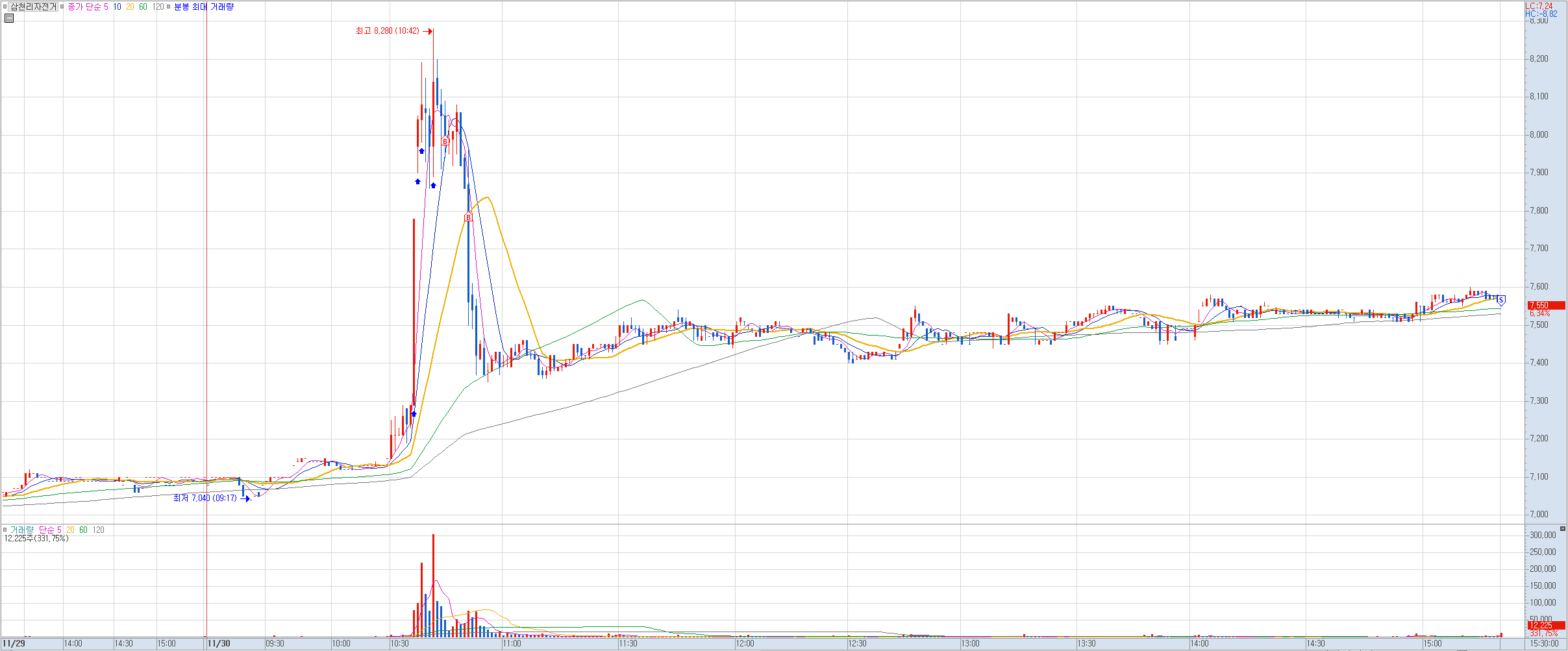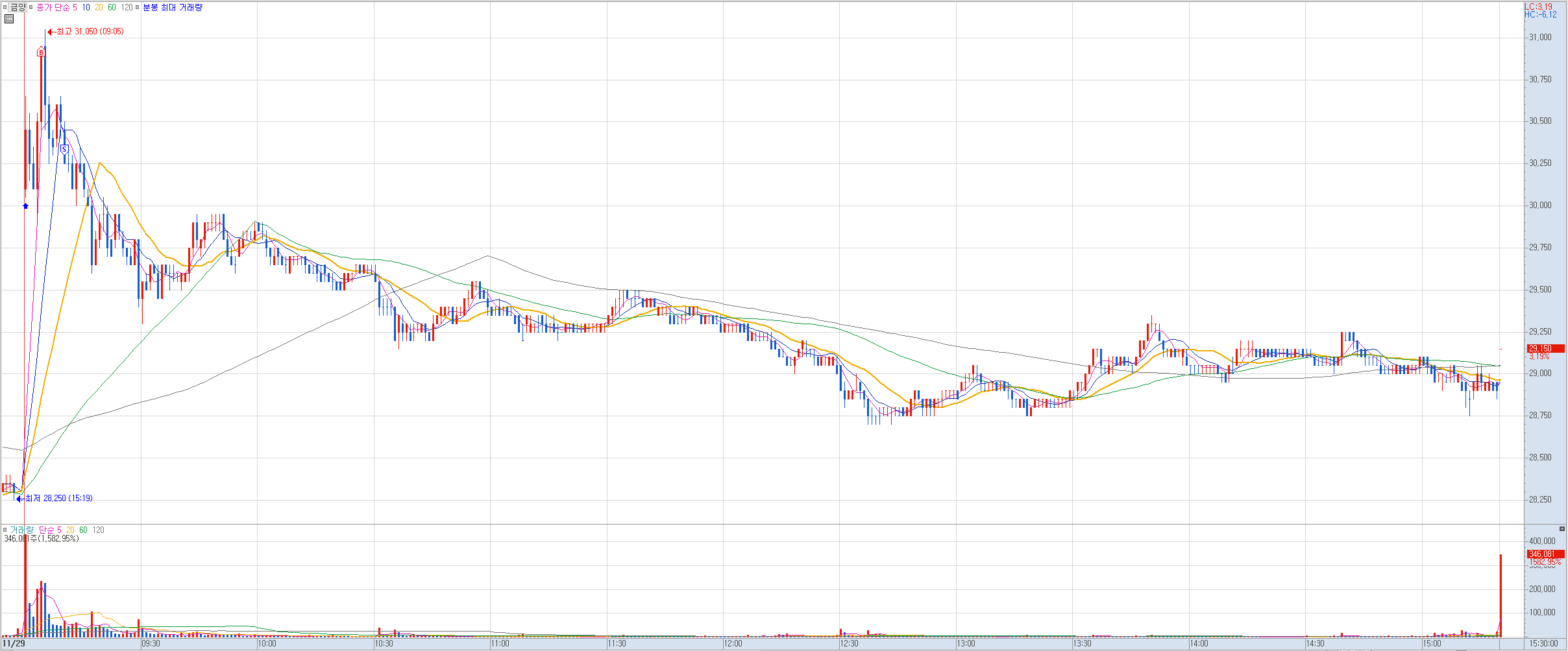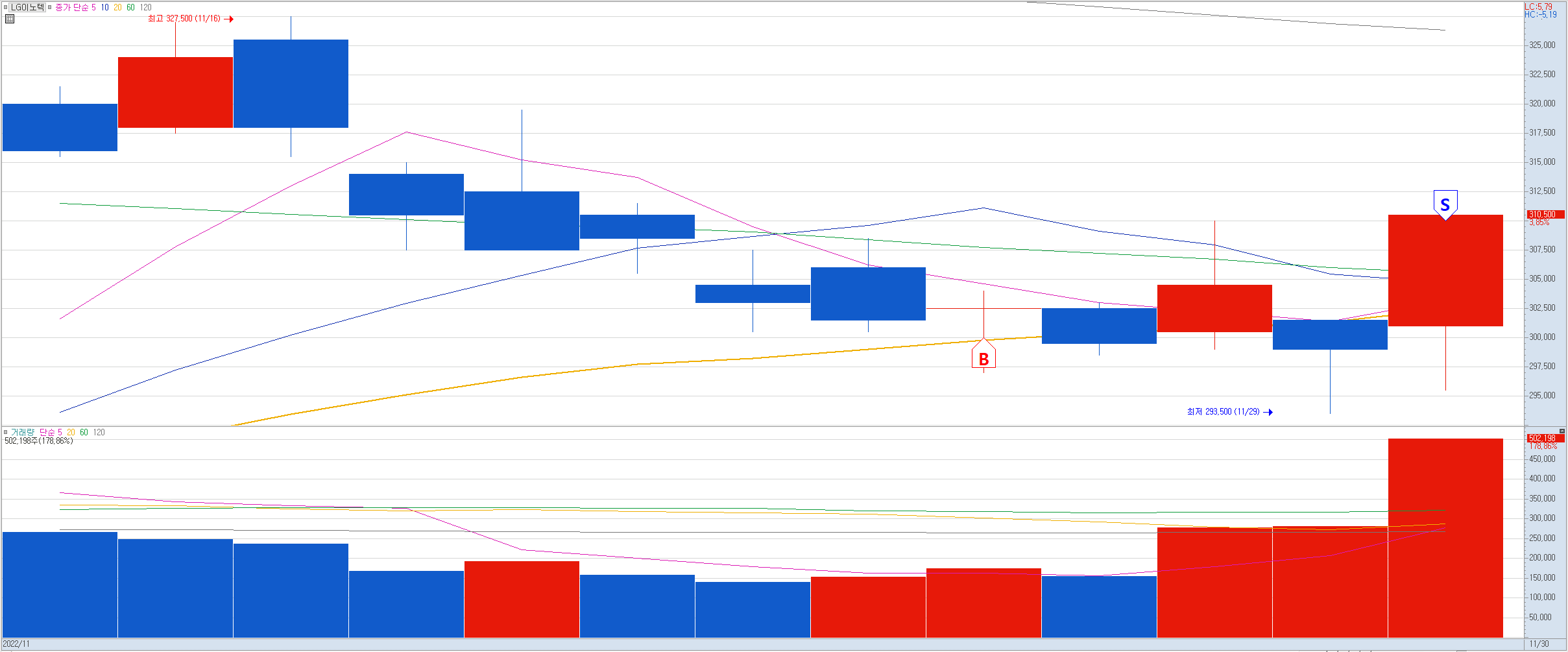 비고: 짱돌 맞고 버텼다가 회복 못하고 큰 손절로 마감. 이런 종목이 장막판에 들어올리는 경우가 있어 그냥 버텼는데 손절은 무조건 신속하게 해야함을 다시 한번 경험하게 했다.