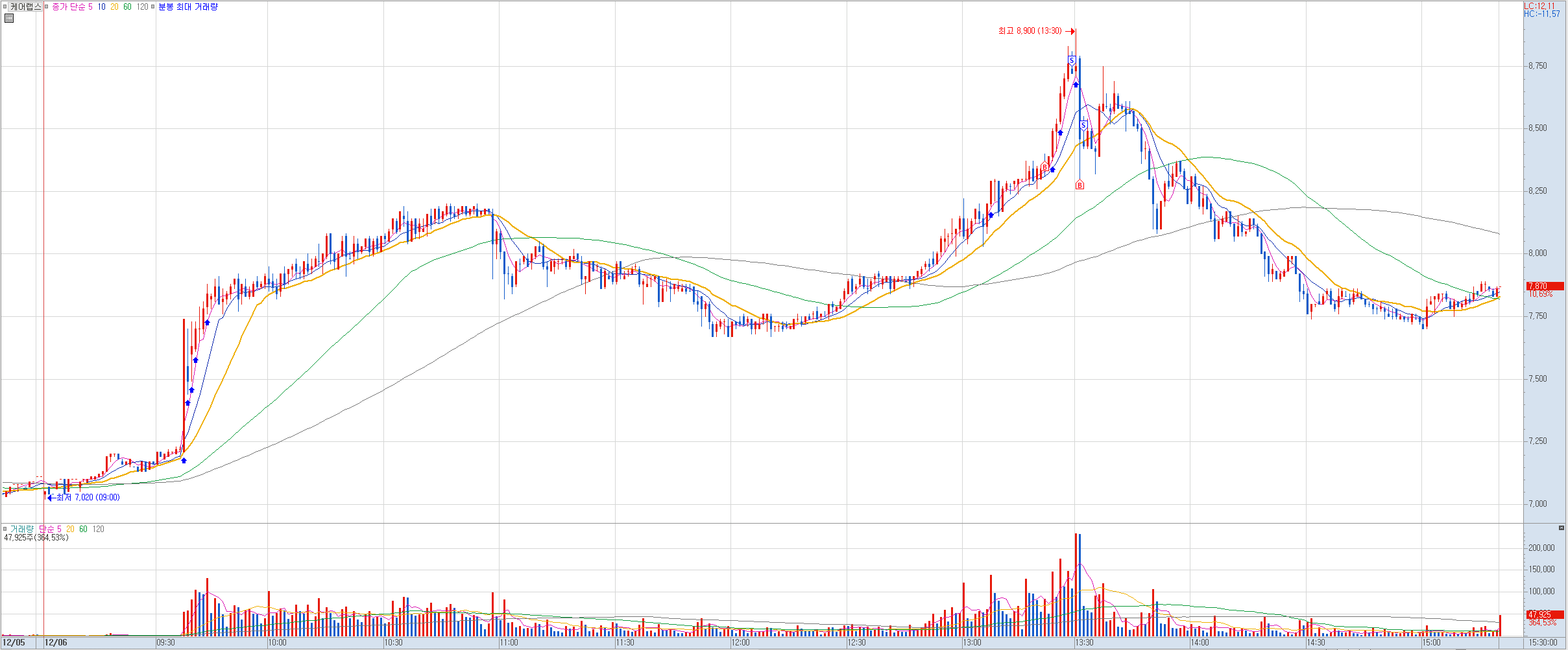 비고: 얘도 급등하며 1차 VI 찍고 내려온 타이밍에 진입했다. 내일부터는 VI 진입 전 종목만 들어가봐야겠다.