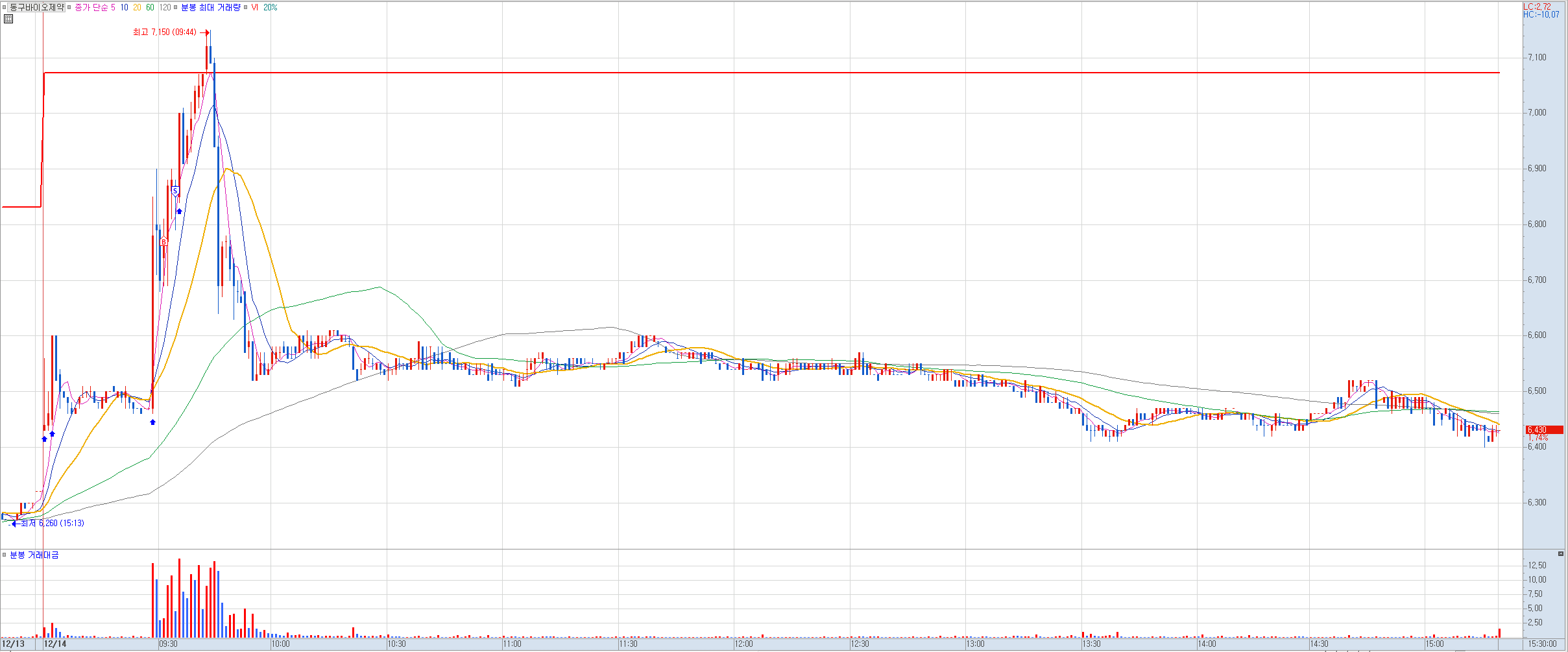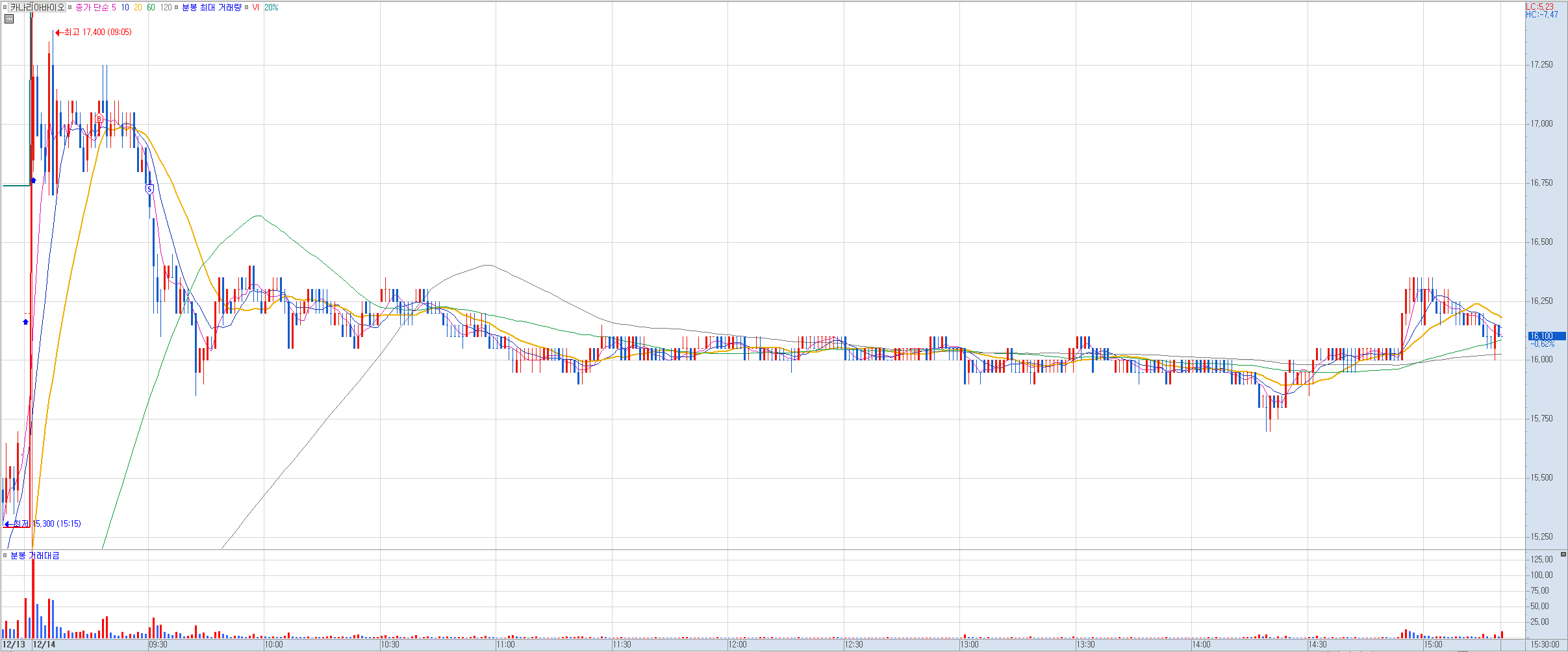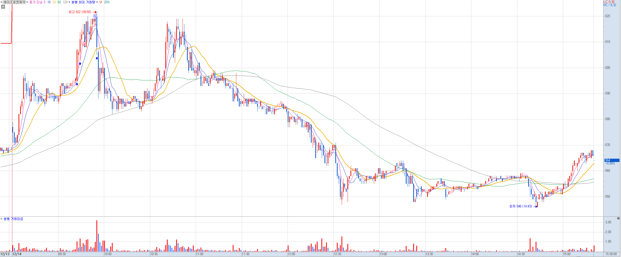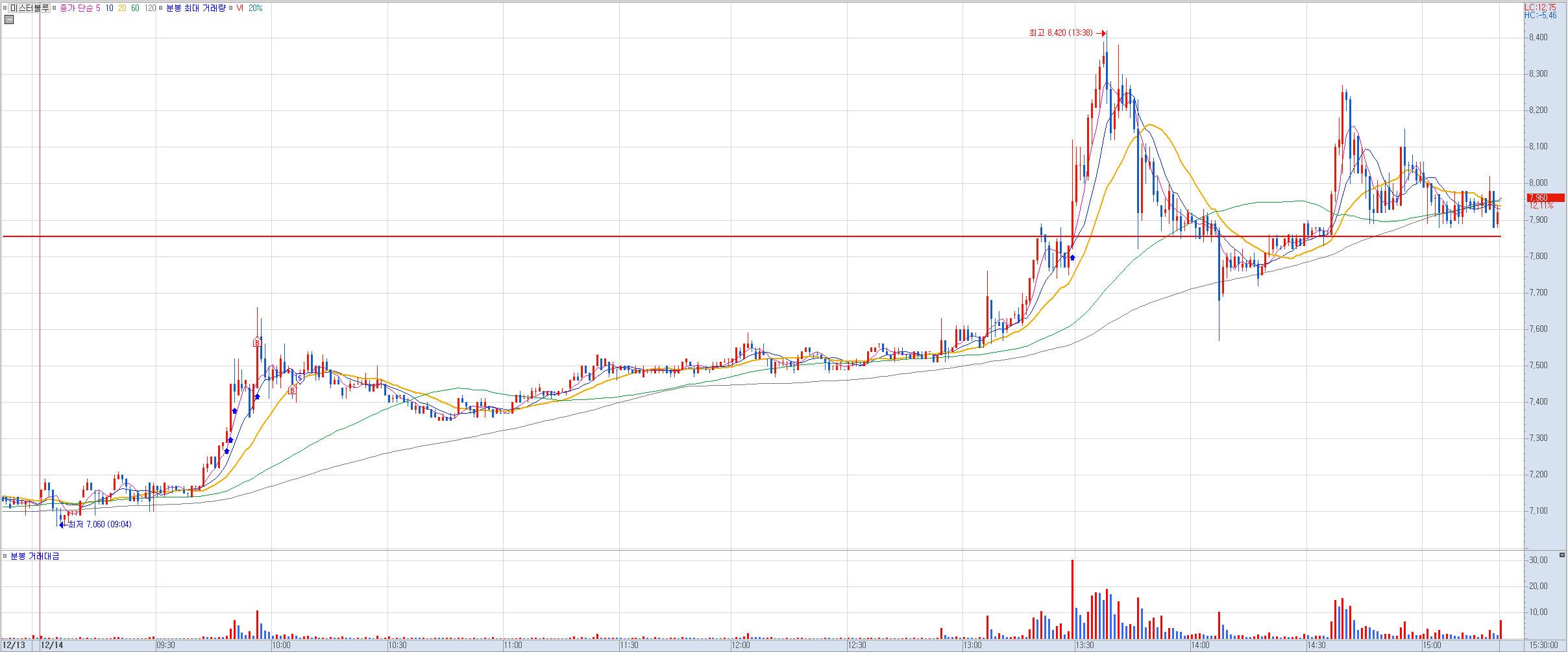 비고: 매일같이 장초반 급등하는 종목에 들어갔다가 대부분 저렇게 쳐맞고 끝나는데 장초반 매매를 아예 안하던지 아님 완전히 눌릴때 아니면 매매를 하지 말아야겠다.