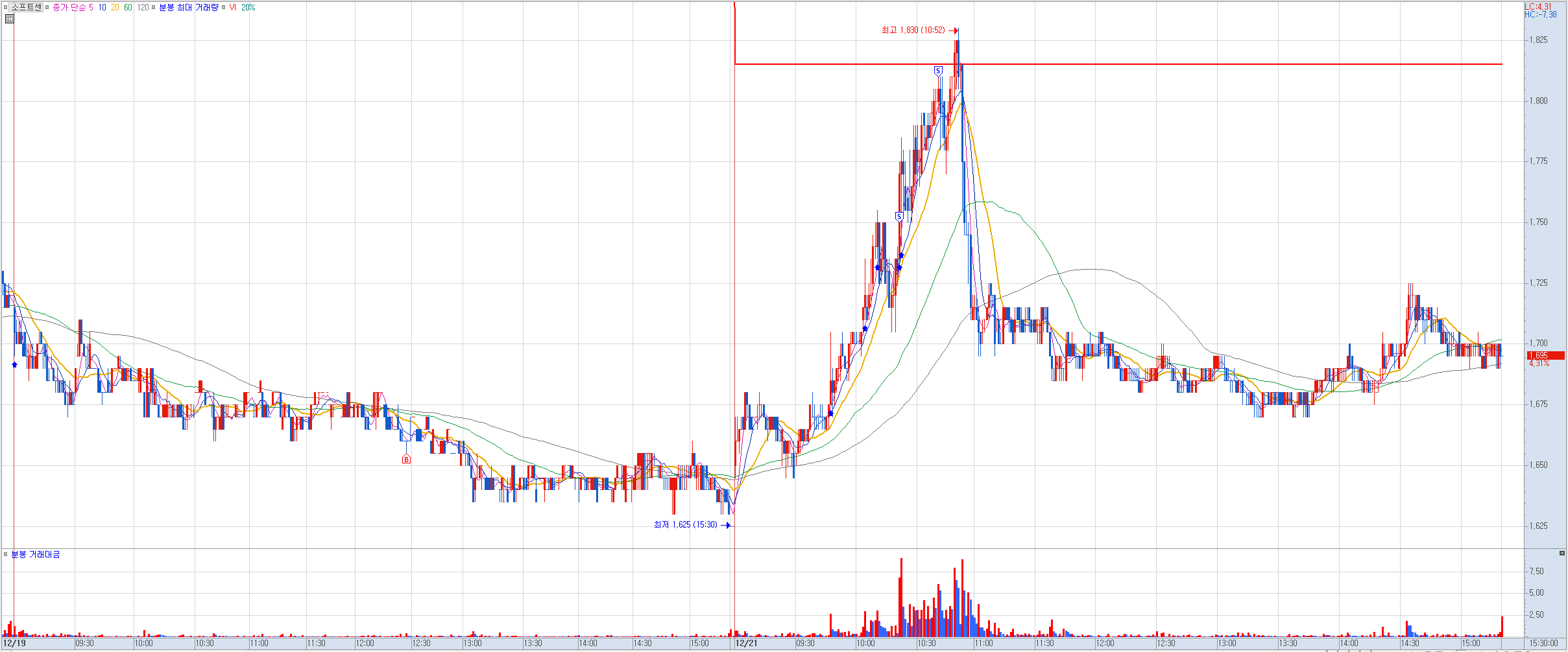 비고: 중국이 비대면으로 교육을 진행할 수도 있다는 뉴스 기사에 그제 강세. 어제 눌리는 모습에 장 막판에 진입. 오늘 장초반부터 강한 상승에 1차로 5%대 절반 익절, 나머지는 9%대 정리