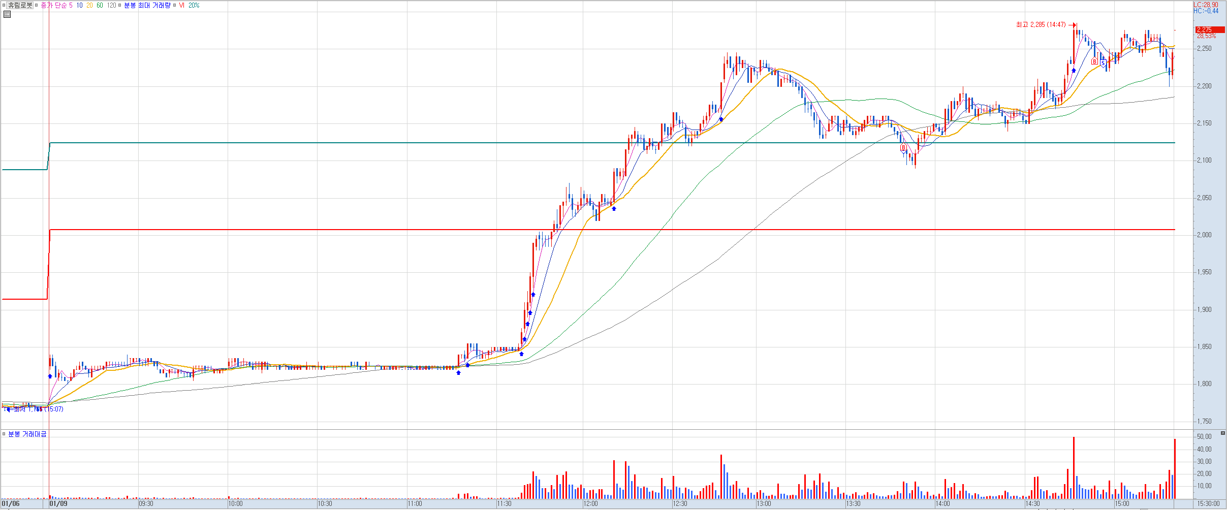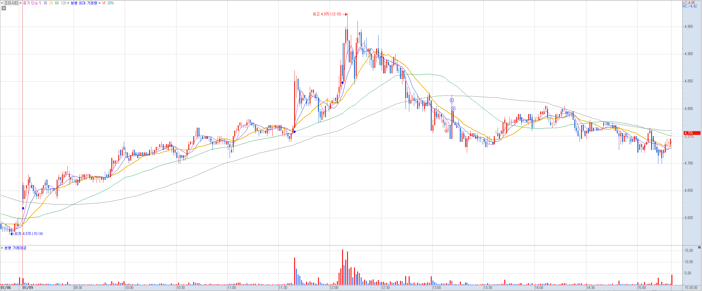 지난 한주 매매는 쉬고 올해 들어서는 첫 매매인데 작년과 별다를 것 없는 쳐맞는 매매로 스타트를 끊었다. 해가 달라졌다고 그 실력이 어디 가진 않았다. 데이 트레이딩 계좌 예수금은 이제 거의 앵꼬 상태에 이르렀다. 5만원씩 두번, 10만원 한번 이렇게 총 3번의 예수금 리필이 이뤄줬음에도 실력은 전혀 늘지 않았고 3번째 깡통에 임박했다. 소액으로 했기에 금전적 데미지는 적지만 심적 데미지는 상당히 큰 편이다. 데이 트레이딩은 하지 말라는 뜻인건지 아님 주식 시장에서 아예 떠나라는 의미인지...