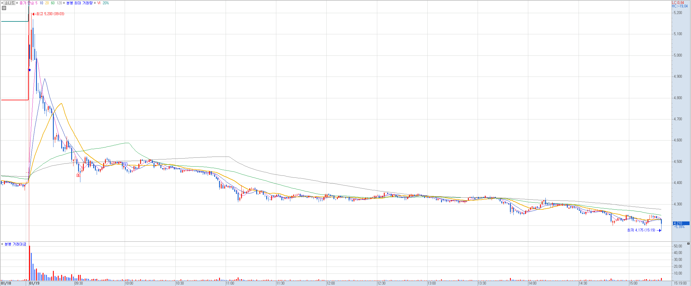 비고: 1시간 넘게 버티다 버티다 그냥 거의 본절 정리했는데 조금만 더 버텼더라면 2~3%는 먹었을텐데. 저렇게 지지 라인을 이탈하지 않고 계속 횡보중인 건 좀 더 버텨볼만한데 장중에 그렇게 하기가 쉽지 않다. 횡보로 끝날 수도 있고, 더 하락할 수도 있기 때문에.