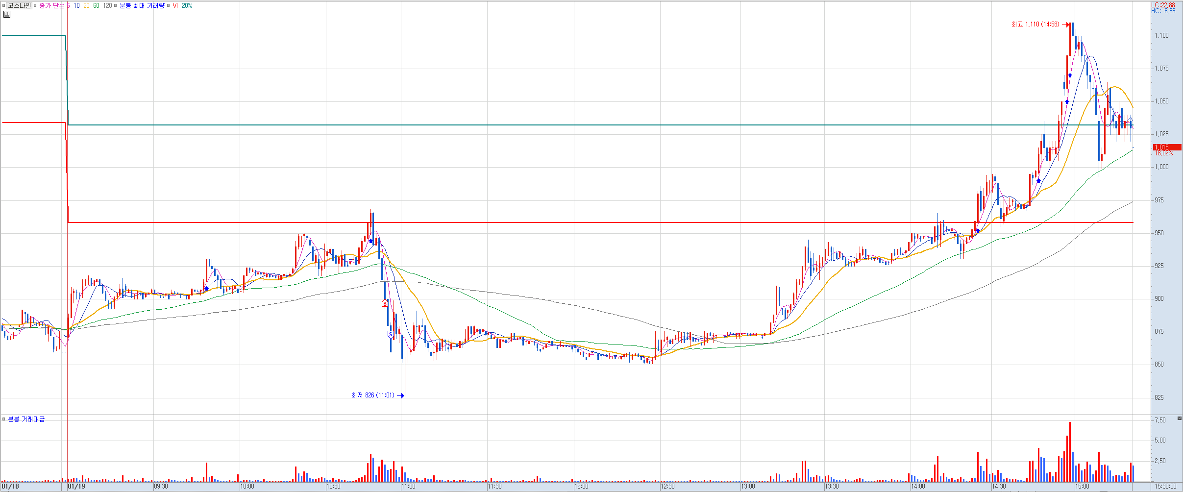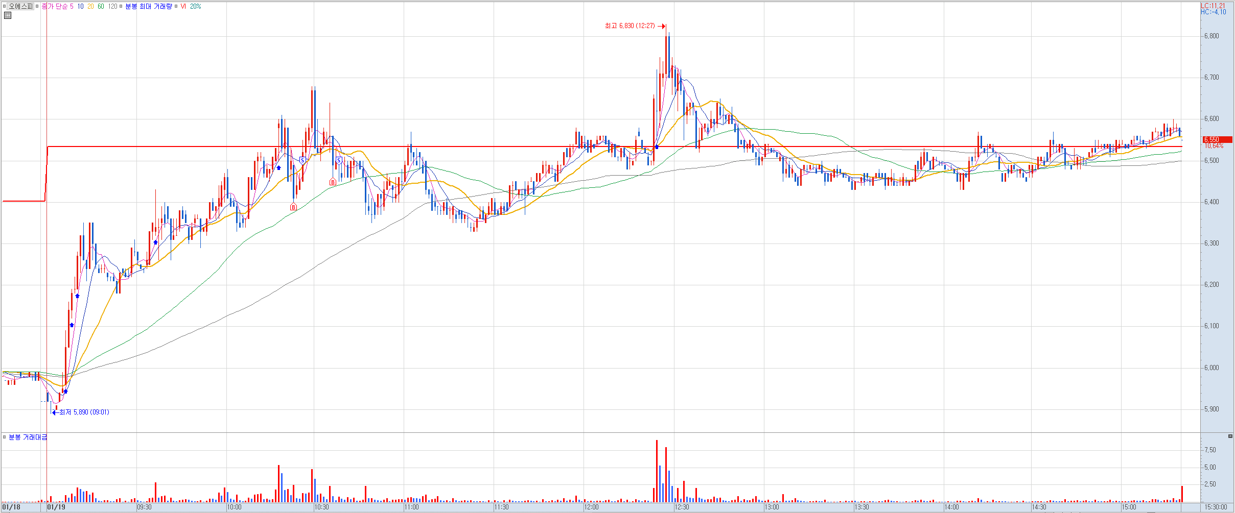 비고: 재료가 좋아서 1차 VI를 노리며 비교적 낮은 가격에 진입했는데 아주 짧은 순간이었지만 먹을 기회를 놓치고 손절로 마감