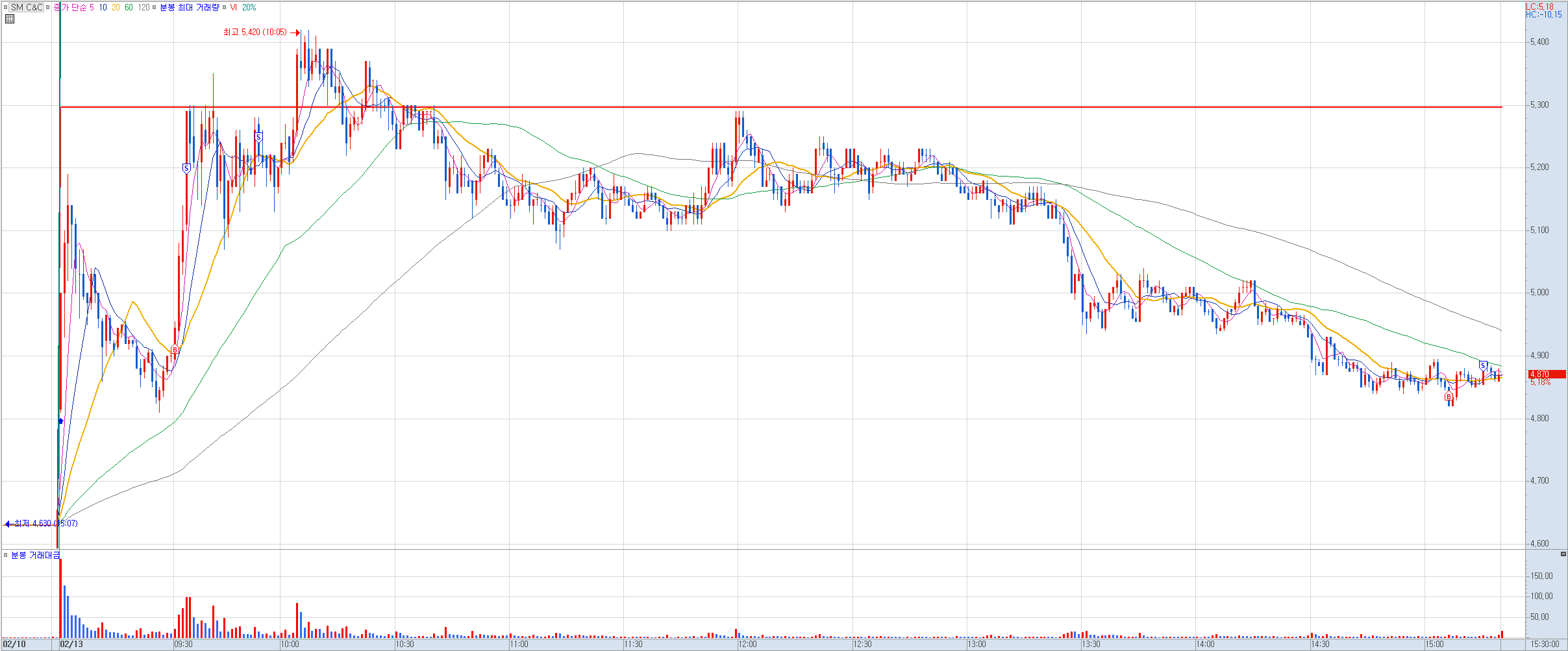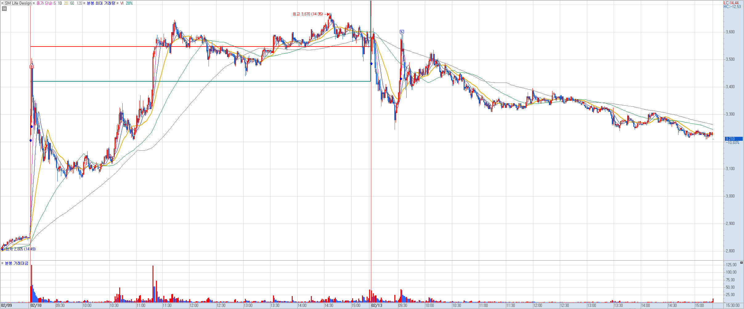비고: 지난주 금요일 아침 장전에 하이브가 에스엠 인수전에 참전한다는 뉴스를 듣고 장시작하자마자 진입. 운좋게 일찌감치 상한가에 진입했고 오늘은 분할매도 전략으로 대응하려고 했는데 생각보다 시초가가 많이 뜨지 않는 모습에 시초에 절반 익절 후 급등하는 듯 하더니 다시 주저 앉는 모습에 반등을 기다리려다가 욕심을 버리자는 생각에 시초가와 가까운 라인에서 나머지 정리. 하지만 얼마 후 바로 다시 급등ㅠㅠ 에휴~~ 언제쯤 나에겐 단타로 30% 이상 먹게 되는 날이 오게 될지.
