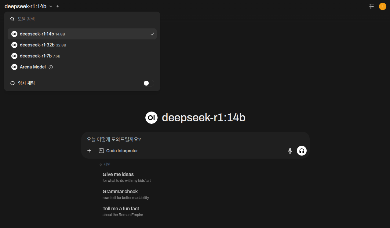 그리고, 웹페이지를 열어 Open WebUI 접속. 기본 접속 주소는 http://localhost:3000