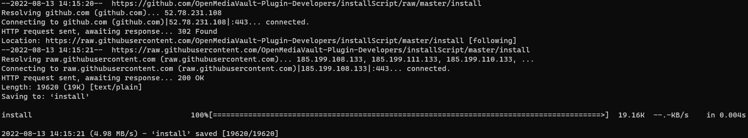 $ wget https://github.com/OpenMediaVault-Plugin-Developers/installScript/raw/master/install