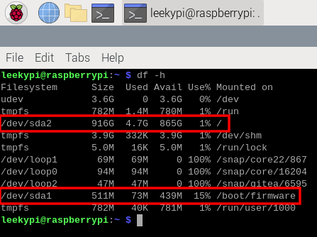 step 12) 부팅 완료. 디스크 정보를 확인해보면 SD 카드없이 USB 드라이브만으로 부팅된 것을 확인할 수 있다.