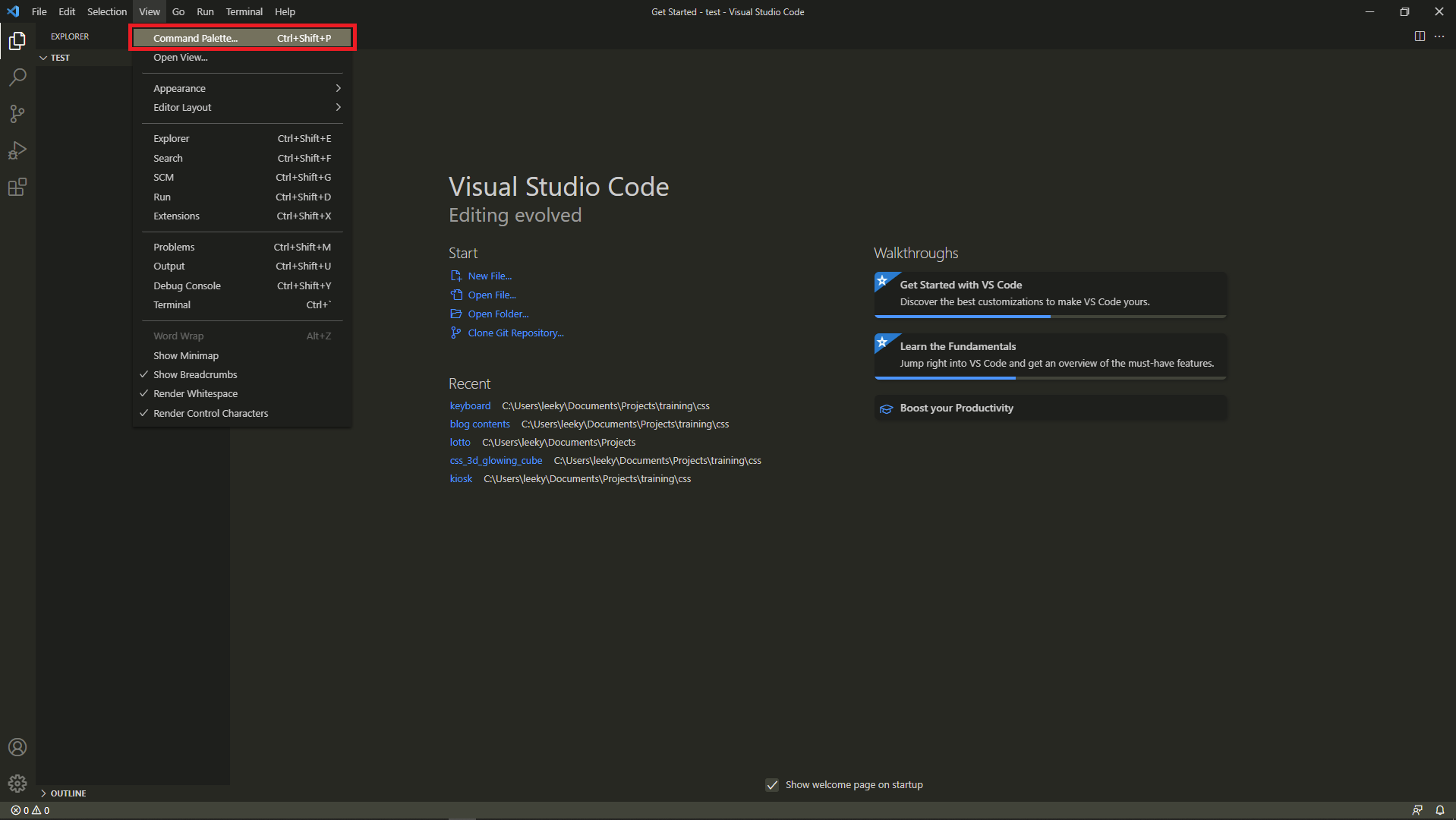 9. VS code 실행 후 View - Command Palette... 클릭