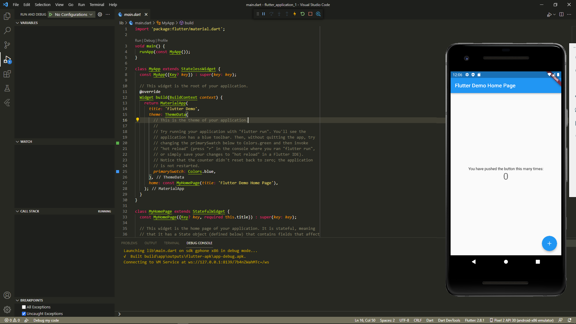 17. Run - Start Debugging을 클릭하거나 F5를 눌러 앱을 실행해본다. 초반에는 필요한 SDK 등을 설치할 수 있기 때문에 다소 시간이 오래 걸릴 수 있다.
