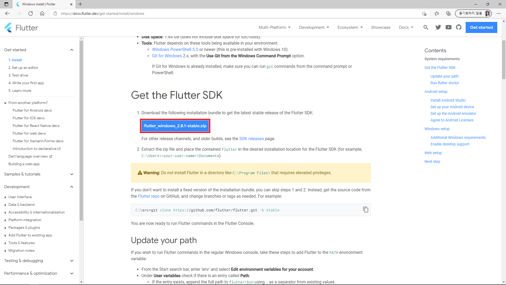 2. Flutter SDK 다운로드